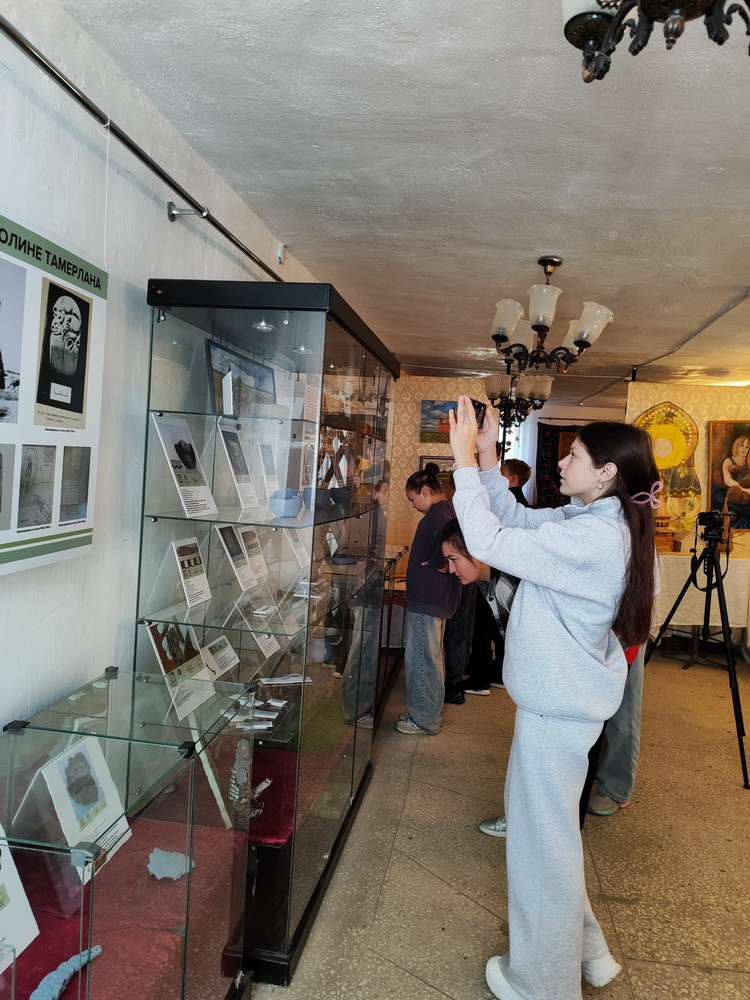 Знакомство с тематической экспозицией «В долине Тамерлана» в «Варненском краеведческом музее» продолжается. 23 сентября учащиеся МОУ СОШ №1, а именно юные журналисты и музееведы посетили уникальную экспозицию, представленную как подлинными археологическими предметами, которым более 4 тысяч лет, так и копиями: изящными керамическими сосудами, элементами конской упряжи, орудиями охоты и рыболовства, предметами вооружения, культовыми, церемониальными артефактами, яркими информационными планшетами о жизни людей эпохи бронзы, картой долины Тамерлана, процессами раскопок, как именно археологи работают над разгадыванием тайн древности. Посещение выставки поможет ребятам создать видеосюжет об историческом памятнике археологии и архитектуры XIV века Башне Тамерлана – Мавзолее Кесене.