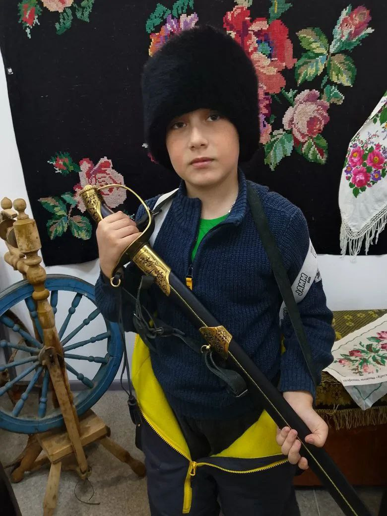 Особый интерес у ребят вызвали старинные предметы, такие как чугунок, ухват, старинный утюг, коромысло и…настоящая казачья сабля.