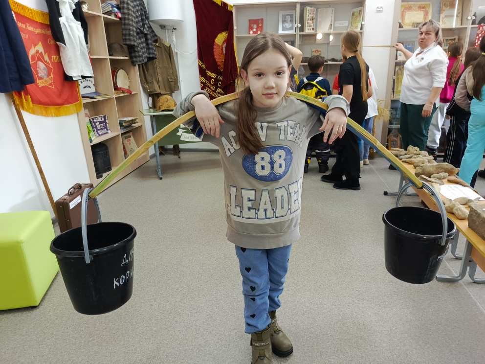 Дальше мы отправились в краеведческий музей «Деревенька моя», здесь нас встретила, хранитель музейных ценностей, Барашева Екатерина Алексеевна, которая увлекательно рассказала о жизни и укладе николаевских казаков. Дети узнали, как жили казаки, какими предметами пользовались в быту и какие традиции передавались из поколения в поколение.