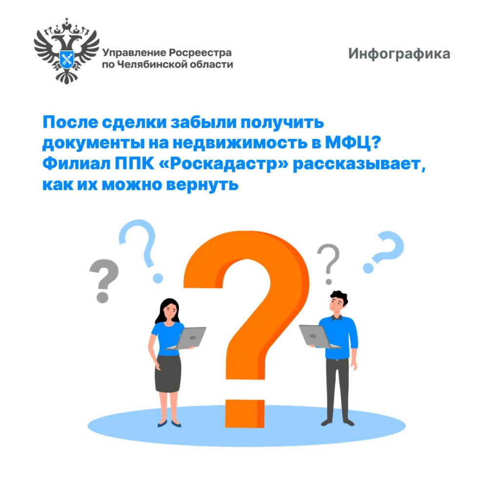 Управление Росреестра по Челябинской области делится инфографикой ППК «Роскадастр» по Челябинской области, которая поможет жителям Южного Урала разобраться в процедуре получения забытых документов на недвижимость. После завершения сделки или оформления недвижимости в МФЦ некоторые южноуральцы не забирают свои документы. На сегодняшний день в архивах филиала хранится уже более полумиллиона невостребованных бумаг.