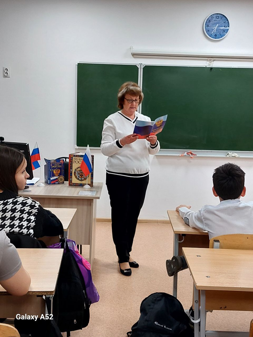Ребята узнали, что путь к главному закону был непрост. Кратко познакомились с предшественниками (Советы, РСФСР) и историей становления действующей Конституции России, которая была принята всенародным голосованием 12 декабря 1993 года. Она закрепила принципы современной российской государственности, определила полномочия ветвей власти, гарантировала свободы и права граждан, такие как право на жизнь, на труд, на отдых, на охрану здоровья, на образование и др. Кроме прав, у граждан России имеются обязанности, которые отражены в основном законе.