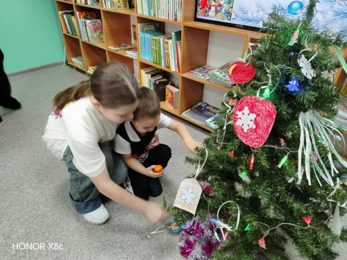 Красивые, яркие, непохожие друг на друга игрушки украсили нашу ёлочку. И теперь ей совсем нескучно стоять одной в библиотеке, потому что она тоже верит в чудо.