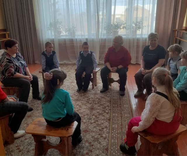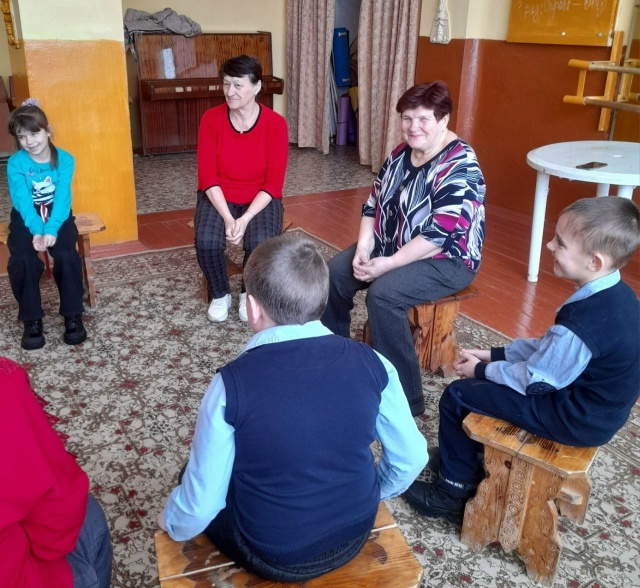 На очередном занятии 18 февраля 2026г. они разучивали с сельскими детьми классическую детскую словесную игру «Я садовником родился».