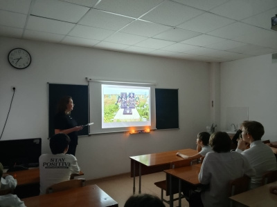 Библиотекарь Варненской детской библиотеки провела урок мужества «Имя есть у этого героя, великой армии – солдат» для учеников 7 «А» класса МОУ «Гимназия им. К. Орфа».