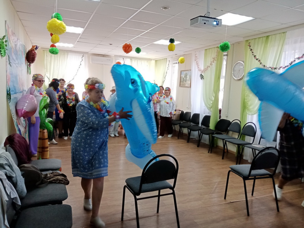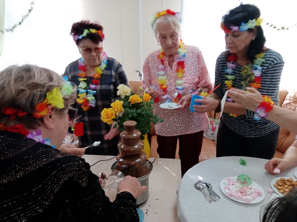 Александра провела с участниками клуба увлекательную, познавательную викторину о Гавайских островах, провела игры, конкурсы, которые никого не оставили равнодушными. Они прокатились на дельфинах, переносили фрукты в корзинах, поиграли в традиционную гавайскую игру Лимбо, и приняли участие в мастер-классе по танцу Хула. Отведали угощения из шоколадного фонтана, утолив жажду из фонтана с напитками.