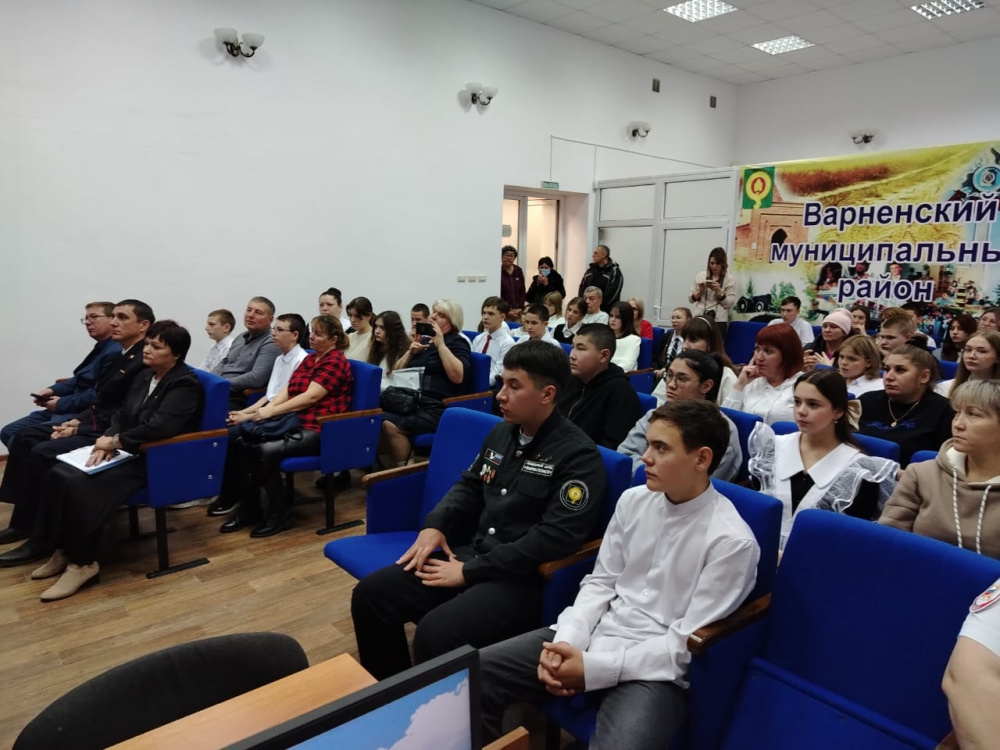 После прозвучавшего Гимна Российской Федерации ко всем присутствующим с приветственным словом обратился заместитель начальник отдела ОМВД России по Варненскому района подполковник внутренней службы Николай Рыбаков, он поздравил школьников со вступлением во взрослую жизнь, пожелав удачи и успехов в учёбе, хранить и приумножать Российские традиции, чтить национальные ценности, быть добропорядочными гражданами нашей страны.