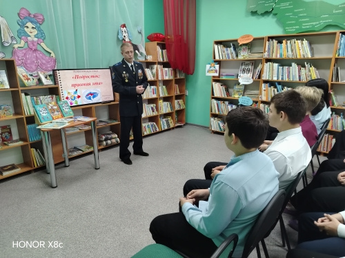 В целях повышения правовой грамотности и профилактики противоправного поведения среди несовершеннолетних Алексей Сергеевич рассказал ученикам 7 «Г» класса МОУ СОШ №1 о видах ответственности, и в каких случаях она наступает, а также привел конкретные примеры и меры наказания. Акцентировал внимание ребят как себя вести в тех или иных ситуациях, с какими экстренными службами связаться и у кого просить помощи при необходимости.