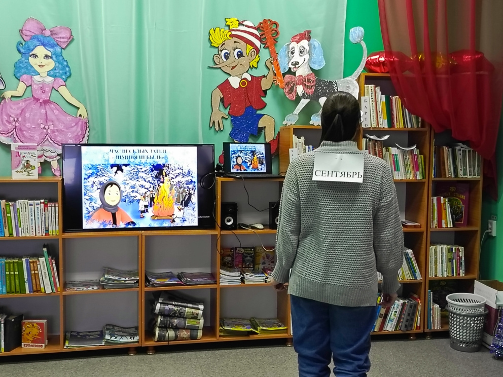 За окном январь — снежный, морозный, самый настоящий зимний месяц. А в библиотеке открылась дверь в «Зимнюю небыль» Самуила Яковлевича Маршака — туда, где у яркого костра собираются все Двенадцать месяцев сразу. И ребята из 5 «Б» класса МОУ СОШ №1 со своим классным руководителем О.Ю. Рыжих стали героями этой сказки.