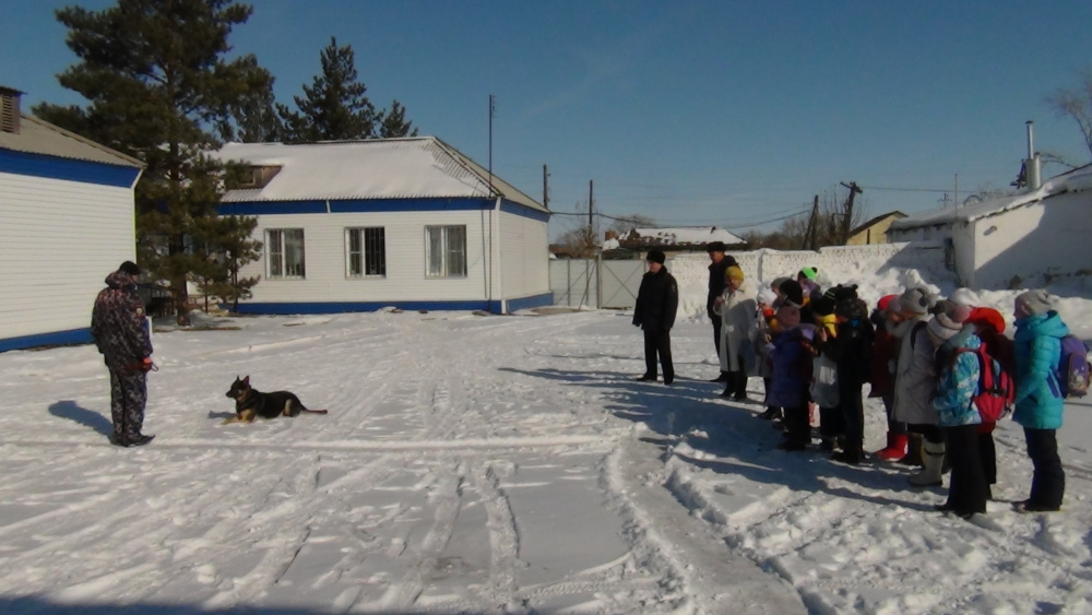 Продолжилось мероприятие выступлением специалиста-кинолога со служебной собакой. Для детей была разыграна сцена задержания преступника, выполнение служебных команд. Ребята остались довольны экскурсией, эмоционально обсуждали действия служебной собаки и кинолога.