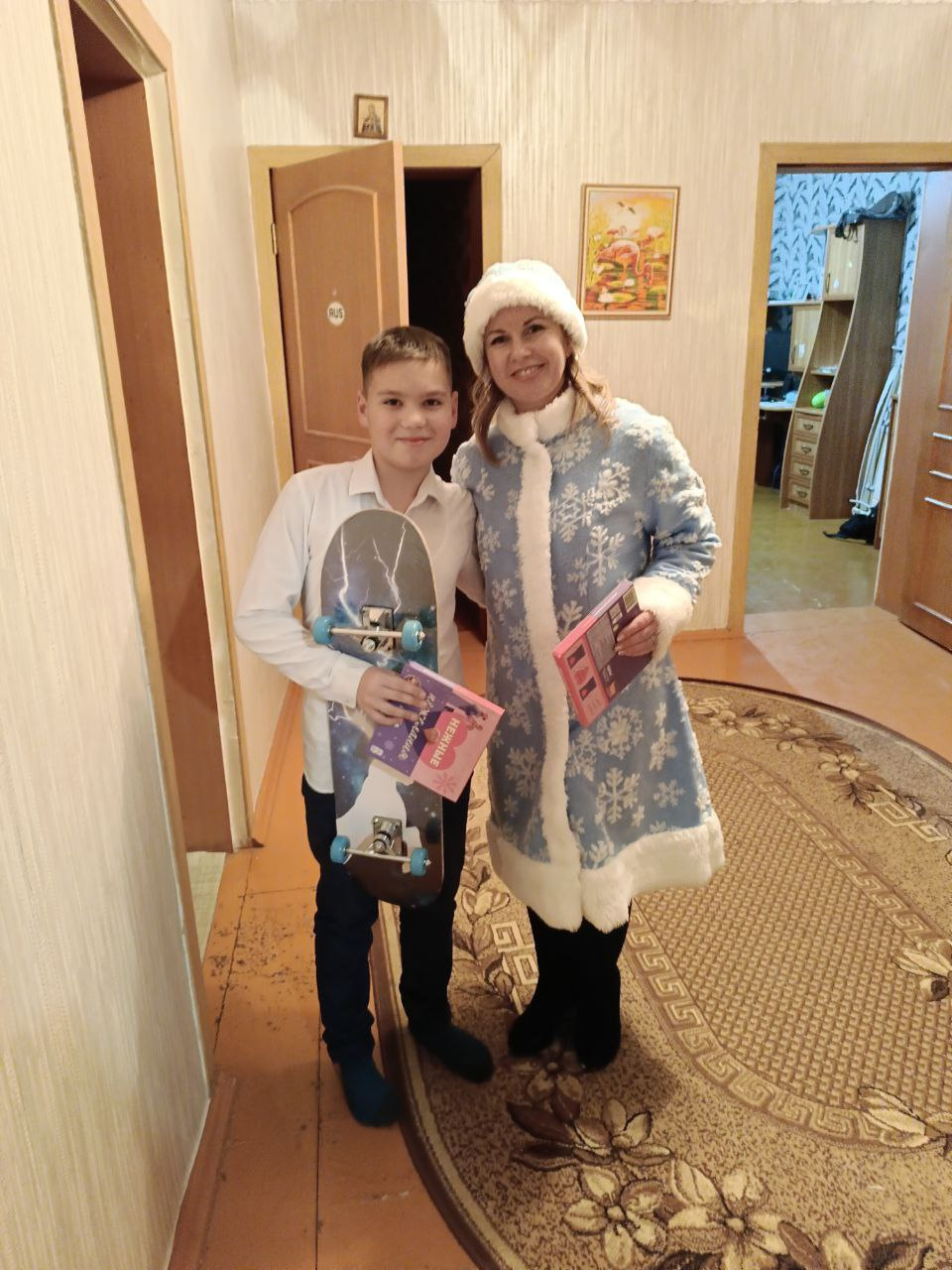 Заместитель Главы по социальным вопросам Оксана Васичкина и Глава Николаевского сельского поселения Алексей Кульков в рамках акции "Елка желаний" вручили подарки детям из семьи военнослужащего, погибшего при проведении Специальной военной операции.