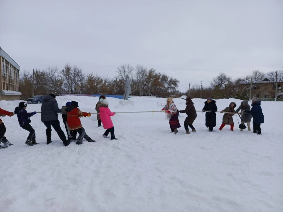 Гости праздника приняли участие в различных забавах: гонках на санках и перетягивании каната, после чего все дружно пили чай и угощались блинами.
