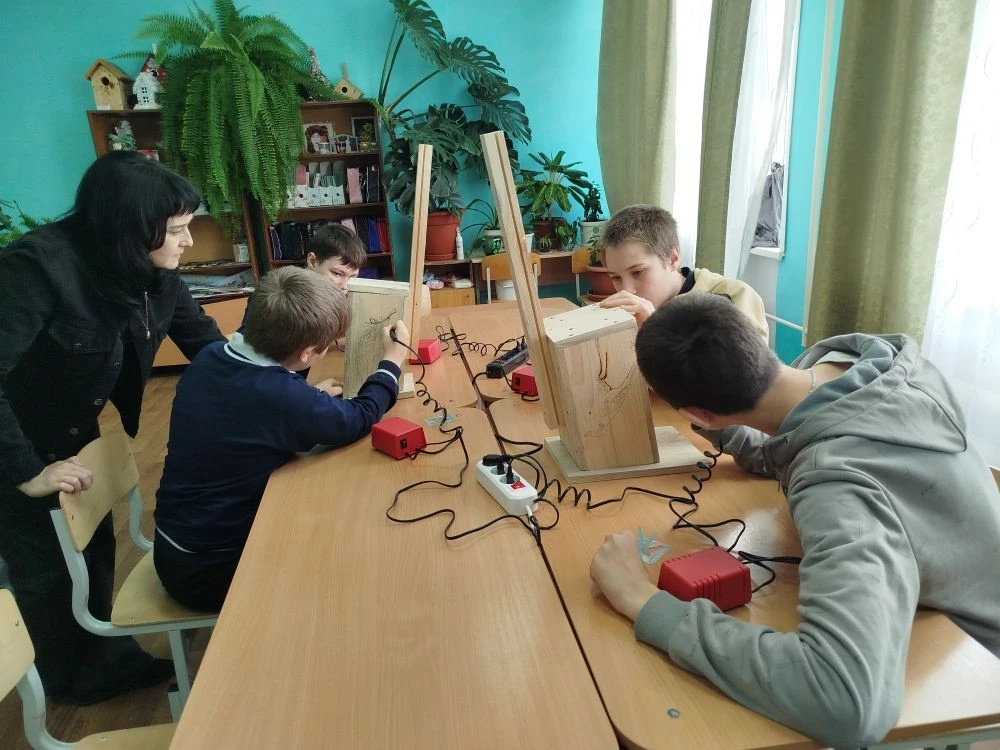 Для ребят постарше была предложена более сложная, но не менее увлекательная техника – выжигание по дереву. Под присмотром взрослых, которые перед началом работы объяснили детям правила безопасности при работе с выжигателем, ребята начали создавать изящные рисунки на деревянных поверхностях. Это требовало усидчивости и аккуратности, но результат того стоил. Тонкие линии придавали скворечникам особую фактуру и неповторимый шарм.