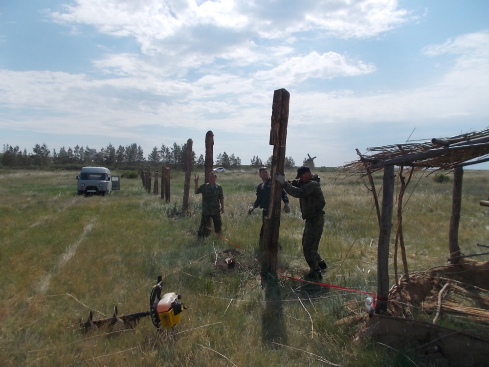 «На поселении Ботайской культуры, реконструкцию которой демонстрируют наши жилища каменного века обнаруживались следы так называемых столбовых ямок. Возможно, что у этих ямок было какое-то другое хозяйственное назначение, но нельзя исключать и того, что это следы установки каких-то деревянных изваяний, идолов. Поскольку дерево в наших грунтах сохраняется плохо, для воспроизведения внешнего вида этих идолов мы использовали образцы известных сохранившихся в болотах деревянных скульптур того времени и немного фантазии. Мы хотели, чтобы забор по границе музейного комплекса не был скучной оградой» - прокомментировал событие замдиректора Александр Кисленко.