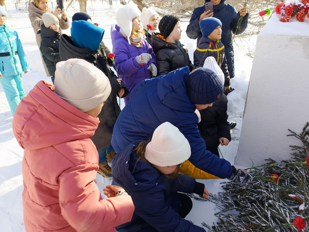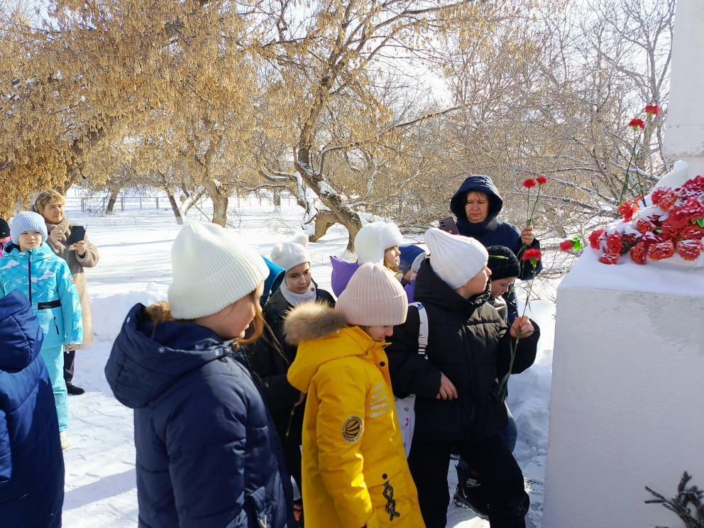 Отдохнув, мы конечно же не могли не посетить мемориал павшим солдатам – землякам в годы ВОВ. Библиотекарь Варненской детской библиотеки познакомила присутствующих с историей памятника, после чего предложила возложить цветы у подножья скульптуры.