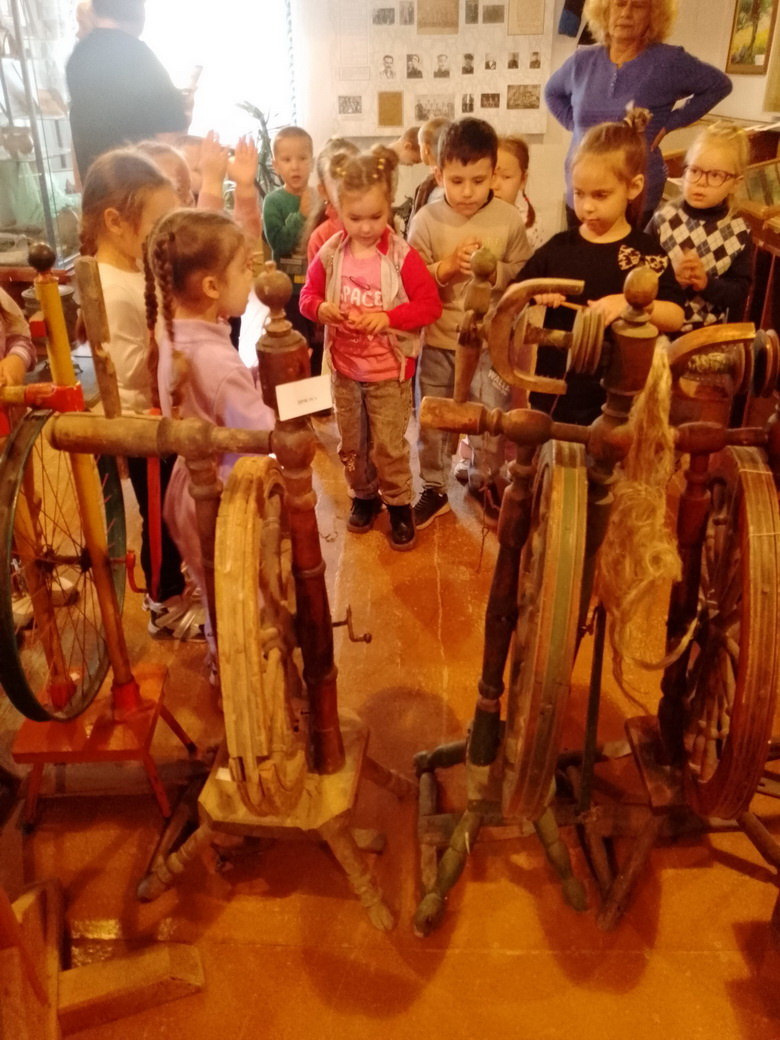 10 октября первый поход в музей совершили воспитанники детского сада «Алёнушка». В музее дети в игровой и доступной форме научились многим правилам поведения, узнали новые термины и пополнили свой словарный запас словами «музей», «музейные экспонаты», «экспозиция», «экскурсовод», научились умению ориентироваться во времени, узнали, зачем хранить памятники культуры и природы, а также научились уважать нематериальные ценности.