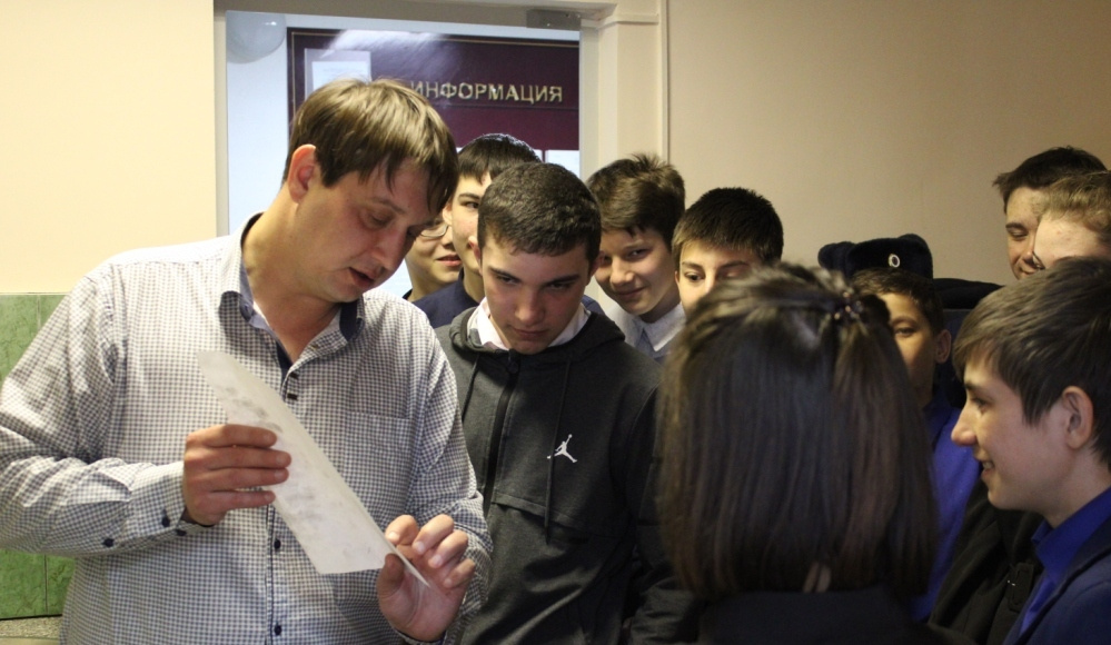 Эксперт - криминалист майор полиции Александр Коннов рассказал о своей работе. У ребят вызвал живой интерес процесс обнаружения, фиксации и изъятия отпечатков пальцев рук, им была предоставлена возможность самим попробовать себя в роли криминалиста обнаружить следы биологического происхождения, найти которые обычному глазу невозможно, а также как с помощью магнитного порошка и кисточки получить образцы отпечатков пальцев.