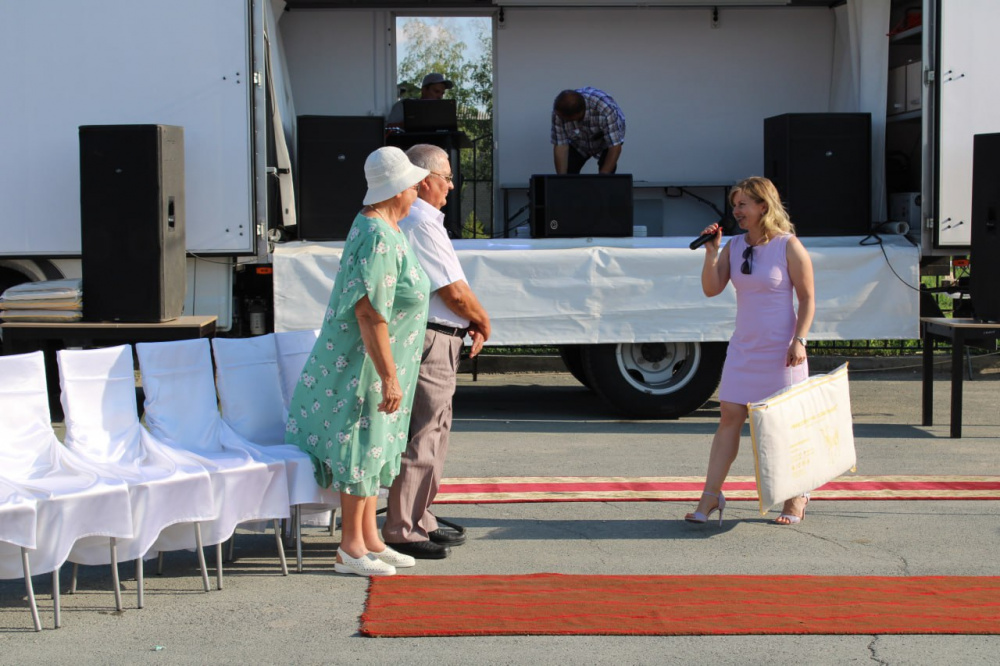 Здесь чествовали семьи, чей жизненный путь может служить примером: Фадеевых (стаж семейной жизни 53 года) и Зайцевых (15 лет). Также поздравили две пары молодоженов.