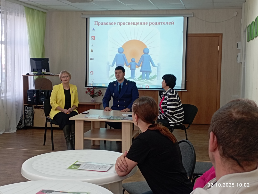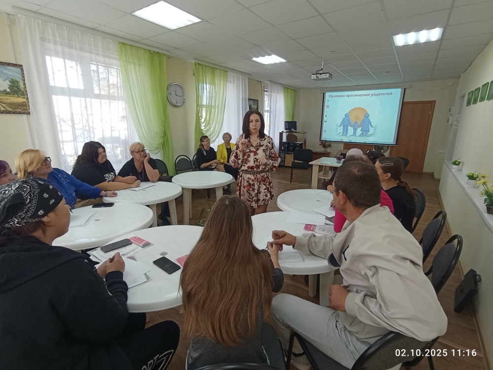 В рамках проведения Единого дня профилактики преступлений и правонарушений и Дня оказания консультативной помощи для семей с детьми на базе учреждений, оказывающих государственные и муниципальные услуги в сфере социального обслуживания семей с детьми в актовом зале МУ КЦСОН 02.10.2025 г. было проведено мероприятие на тему: «Правовое просвещение родителей» для родителей (законных представителей) из числа семей, находящихся на социальном сопровождении в ОПСиД МУ КЦСОН. К мероприятию были привлечены представители государственных органов и служб: заместитель прокурора Варненского муниципального района Камалов И.Ш., директор МУ КЦСОН Сапсай О.В., начальник отдела семьи и выплат детских пособий УСЗН Махмутова Г.Б., психолог ОПСиД МУ КЦСОН Заболотникова Т.В.