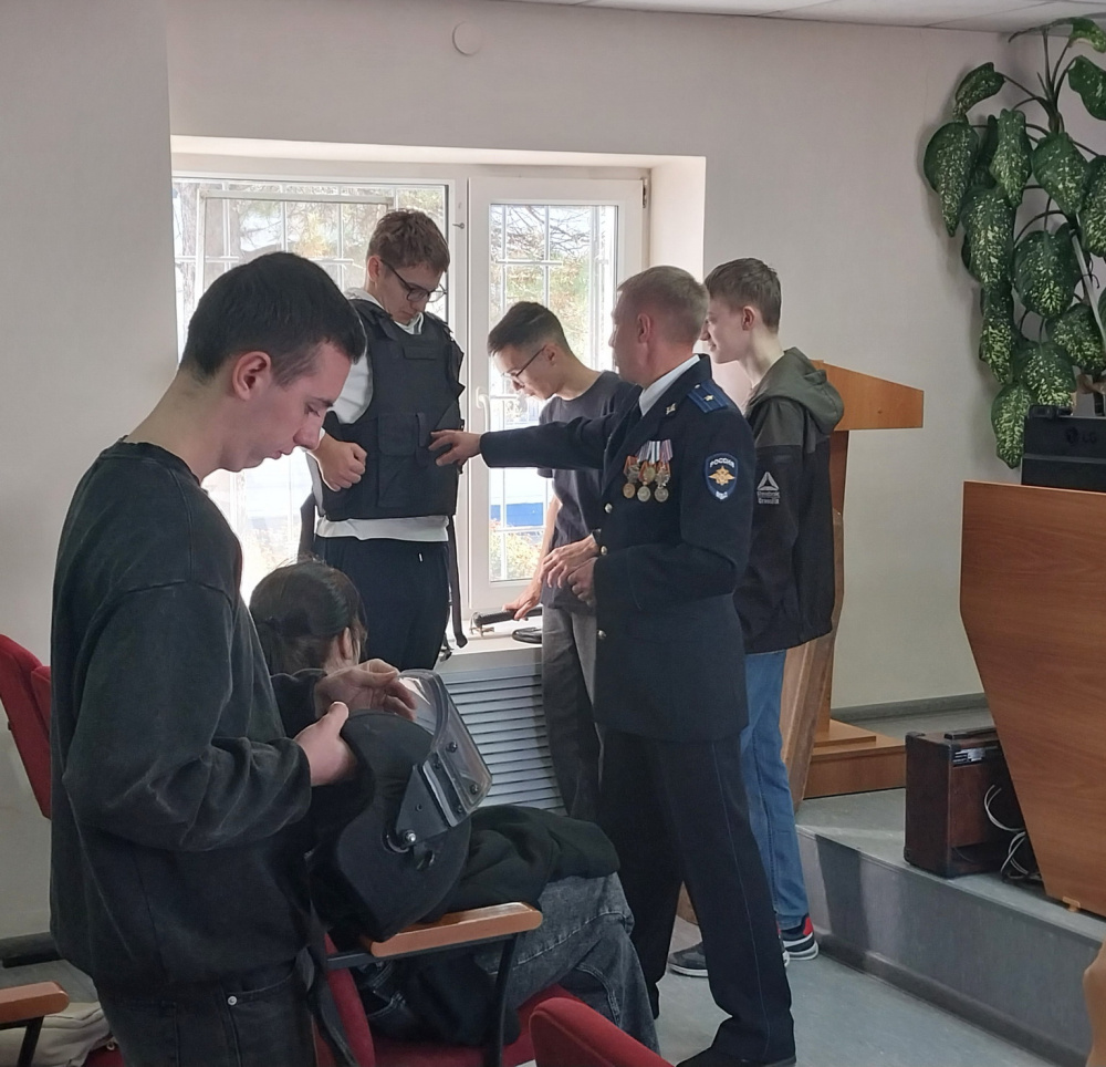 Затем были продемонстрированы специальные средства, состоящие на вооружении в полиции. Каждому из ребят представилась возможность их рассмотреть, подержать в руках и примерить.