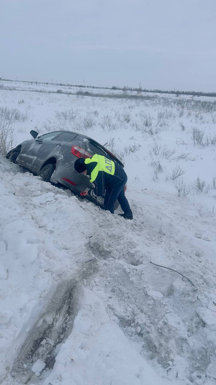 Во время планового патрулирования участковый уполномоченный полиции капитан полиции Марат Бакежанов и инспектор дорожно-патрульной службы лейтенант полиции Кирилл Нашивочников обнаружили автомобиль, съехавший с проезжей части. По словам водителя, она не справилась с управлением на зимней дороге и не смогла самостоятельно выбраться из кювета.