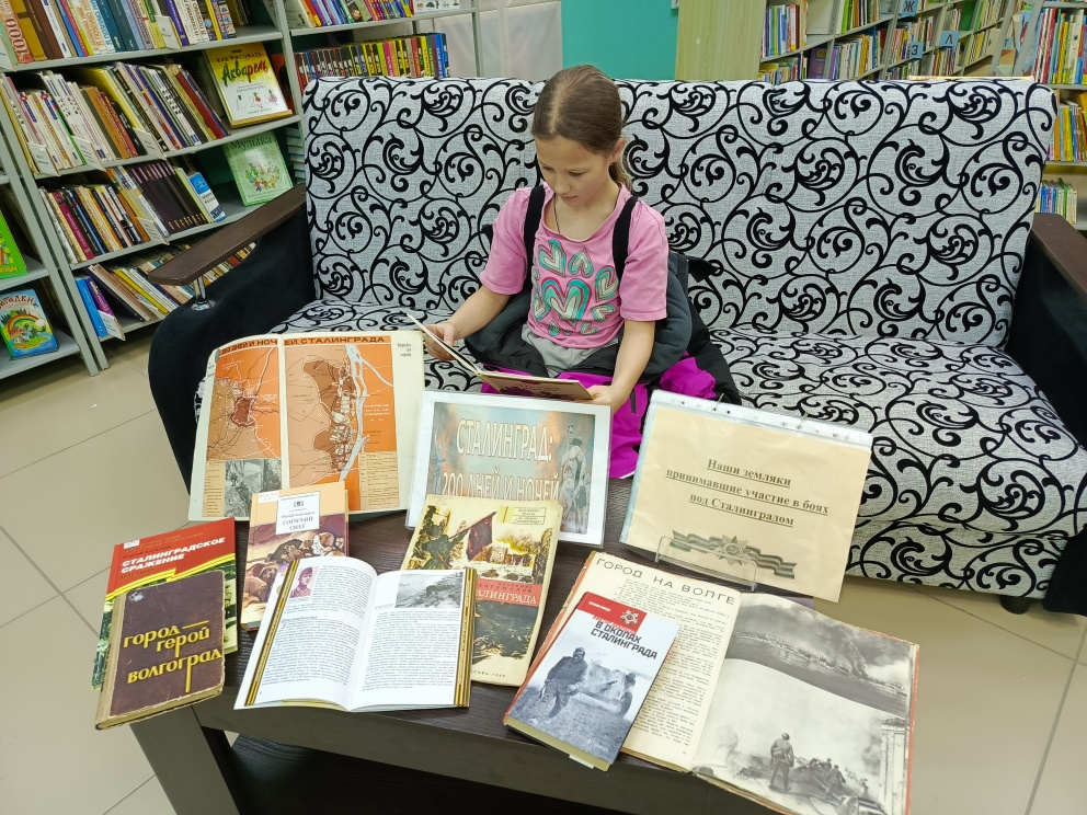 Также библиотекарь рассказала о земляках, которые принимали участие в боях под Сталинградом. Это генерал – лейтенант Варенников И.С., сержант Тимофеев Н.И. старший сержант Кожевников Ф.Н., старший сержант Маклаков А.Н., разведчик Бывакин И.П. и др.