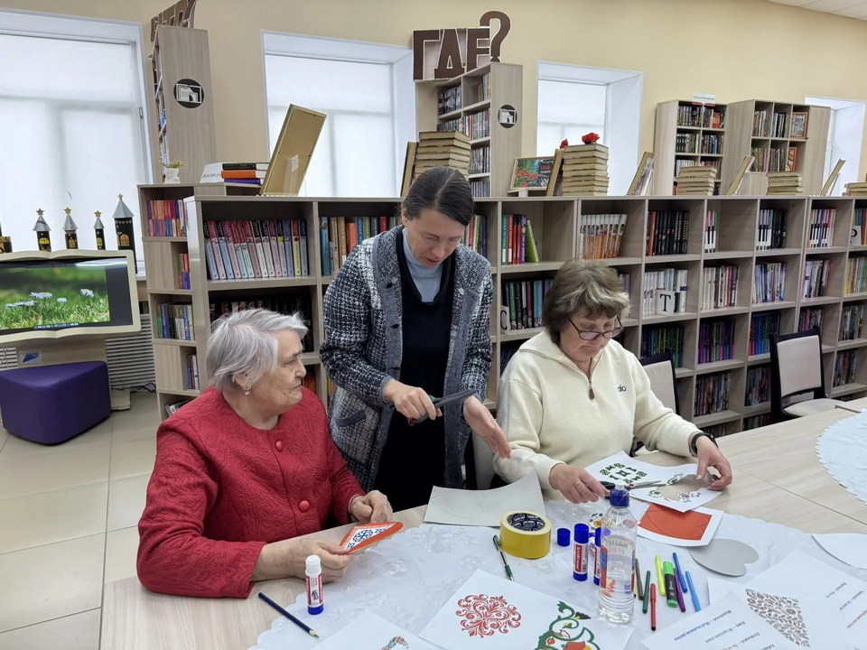Наши гости из "Центра общения старшего поколения" приняли участие в мастер-классе по изготовлению памятных открыток-сердец с признаниями в любви к России и родным людям на языках народов, проживающих на территории России: татарском, казахском, башкирском, белорусском, чувашском и других. Открытки были украшены национальными орнаментами на выбор участников.