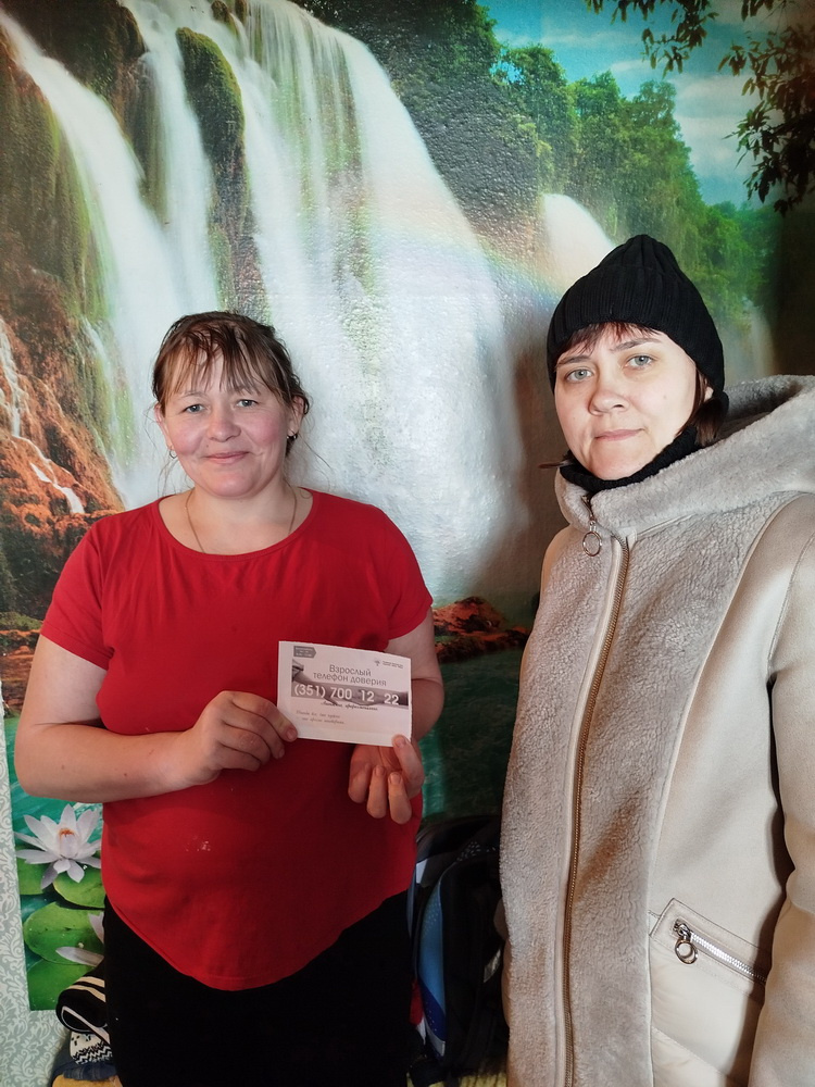 В целях информирования семей, состоящих на социальном сопровождении в категориях СОП, ТЖС в МУ «КЦСОН», специалистами отделения помощи семье и детям проведена акция «Телефон доверия – первый шаг в решении твоих проблем». Родителям и детям вручены листовки с номерами Детского телефона доверия 8-800-2000-122 и телефона доверия для взрослых 8 (351) 700 12 22.