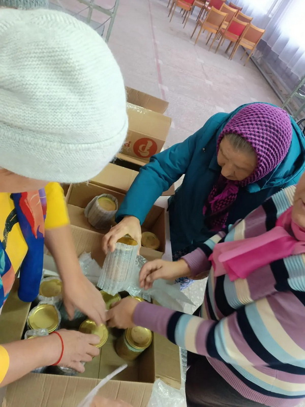 Общими усилиями добровольцами села были собраны самые необходимые вещи, маскировочные сети, антидроновые одеяла, продукты длительного хранения-консервы, крупы, сухие супы, чай и т.п.