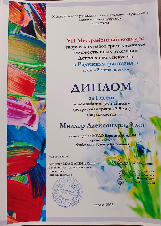 Ученики художественного отделения Варненской детской школы искусств приняли участие в VII межрайонном конкурсе творческих работ «Радужная фантазия» в г. Карталы.