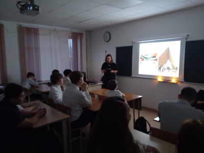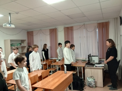 Библиотекарь Варненской детской библиотеки провела урок мужества «Имя есть у этого героя, великой армии – солдат» для учеников 7 «А» класса МОУ «Гимназия им. К. Орфа».