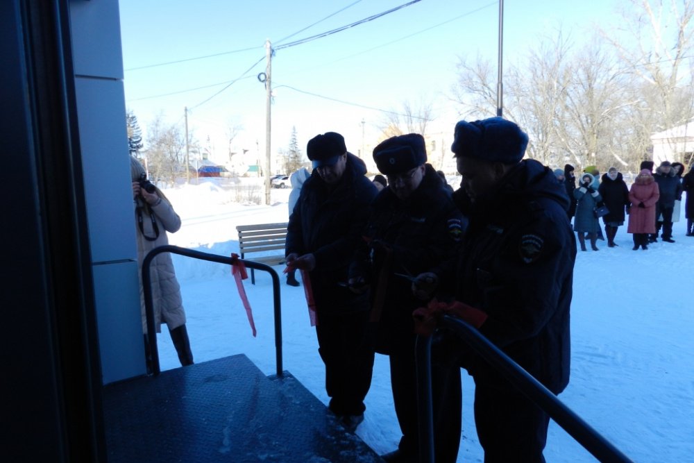 В ходе торжественной части, в целях укрепления материальной базы открываемого пункта, от руководства ГУ МВД России по Челябинской области в пользование участковому уполномоченному полиции ОМВД майору полиции Виталию Выприцких были переданы документы и ключи от нового служебного автомобиля «Нива».