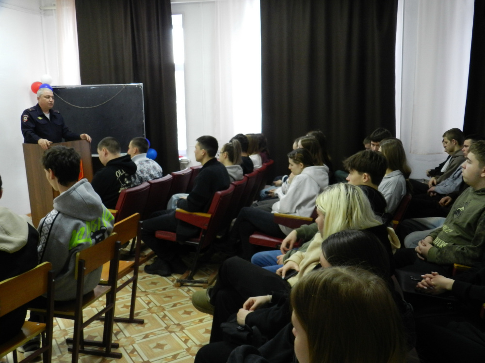 Встреча со студентами 1,2 курсов и преподавателями состоялась в актовом зале техникума.