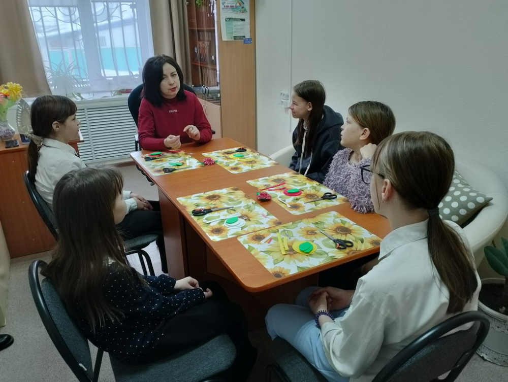 05.03.2026 г. в преддверии празднования Международного женского дня специалисты отделения помощи семье и детям МУ «КЦСОН Варненского муниципального округа» организовали для детей из семей, состоящих на социальном сопровождении, мастер-класс по изготовлению украшения для волос «Хризантема».