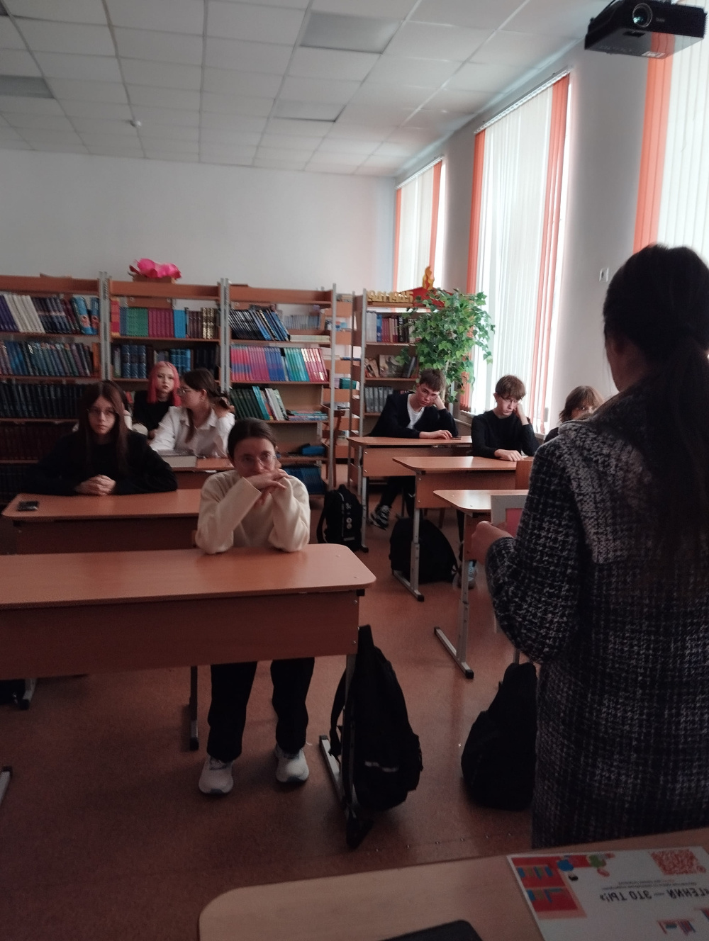 28 января Варненская центральная библиотека побывала в школе № 2. Библиотекарь читального зала Назарова Э.Н. провела онлайн-экскурсию по обновленному пространству библиотеки, рассказала про интересные мероприятия, которые у нас проходят и анонсировала мероприятия на новый 2026 год.