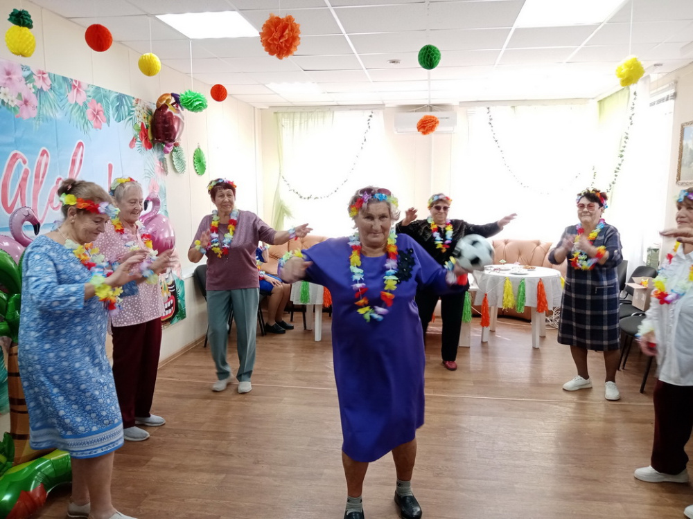 Александра провела с участниками клуба увлекательную, познавательную викторину о Гавайских островах, провела игры, конкурсы, которые никого не оставили равнодушными. Они прокатились на дельфинах, переносили фрукты в корзинах, поиграли в традиционную гавайскую игру Лимбо, и приняли участие в мастер-классе по танцу Хула. Отведали угощения из шоколадного фонтана, утолив жажду из фонтана с напитками.