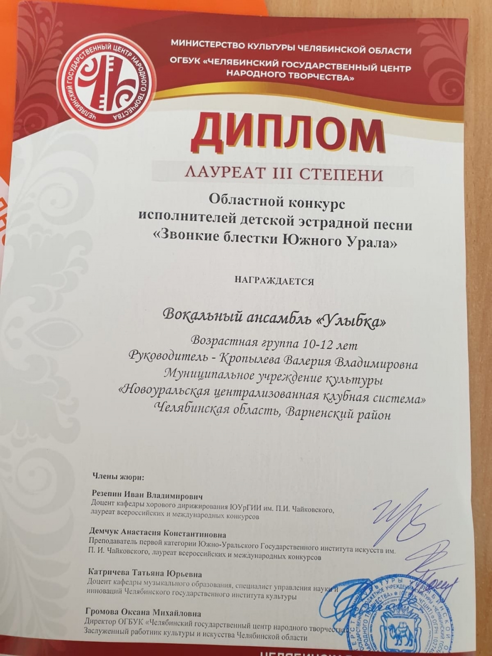 Ансамбль «Улыбка» стал лауреатом lll степени.